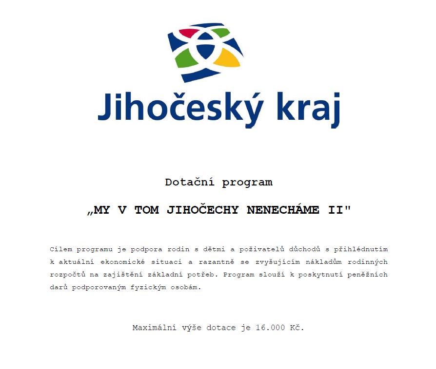 Dotační program „MY V TOM JIHOČECHY NENECHÁME II"