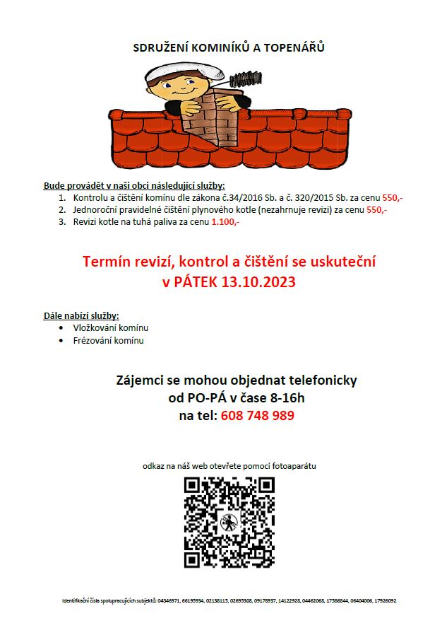 Termín revizí, kontrol a čištění komínů